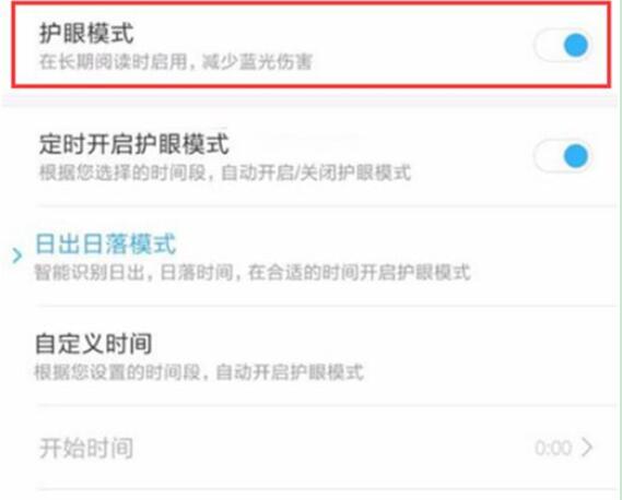 进入显示选项之后,点击打开【护眼模式】,进入护眼模式的设置菜单中,