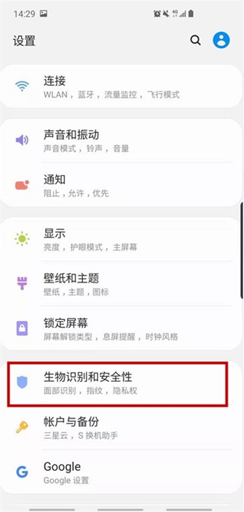 1、在手机桌面点击【设置】图标,进入设置页面之后点击【生物识别和安全性】。