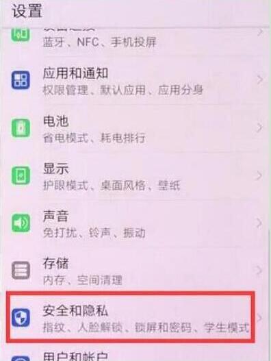 2、找到并点击打开【安全和隐私】,