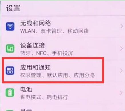 6、在设置菜单下点击进入【应用和通知】 ,