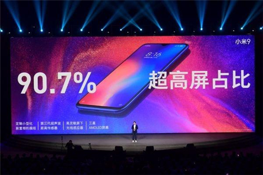 小米9这次采用水滴全面屏设计,得益于屏下光线感应器和超声波距离传感器,顶部边框也被修的很窄,下巴区域作到了极窄,那么小米9屏占比多少呢?