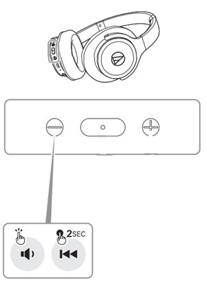 5.长按耳机的“-”号按钮 2 秒左右,可以切换到️上一首歌曲。