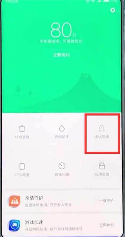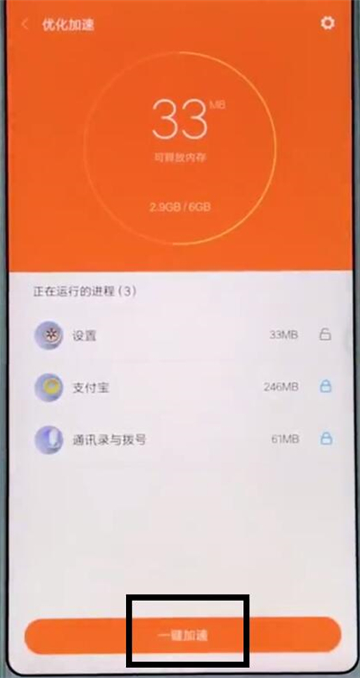 2.等待手机加载完毕,点击屏幕下方的一键加速即可,清理空间内存,减少不必要的运行程序,而达到省电的效果。