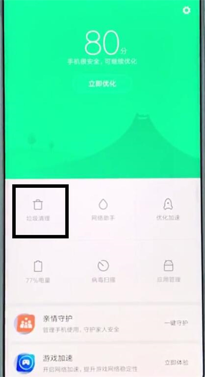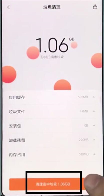 2.等待手机扫描垃圾完毕,点击清理选中垃圾,同样可以让手机节省更多的内存空间而达到省电的效果。