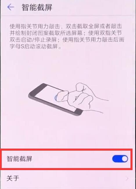 5、最后我们只要点击打开【智能截屏】右侧的开关,即可通过敲击屏幕来快速截图了,打开页面上有详细的使用方法。