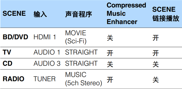 雅马哈HTR-2067家庭影院怎么一键式选择输入源和喜爱的设置借助 SCENE功能,您可以一键式选择分配的输入源、声音程序和打开/关闭。