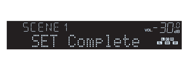 2、按住所需的 SCENE键直至“SET Complete”出现在前面板显示屏中。