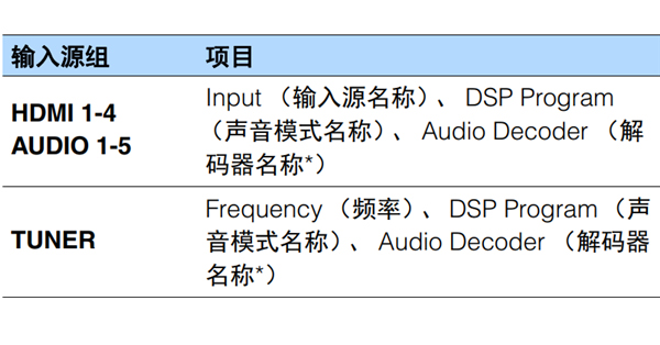 可用的项目因所选的输入源而异。此外,显示的项目可单独应用于每个输入源组。