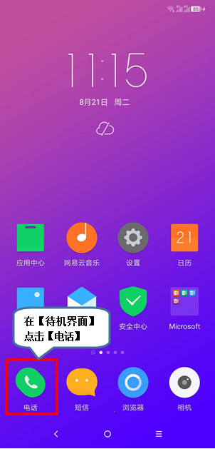 1、在【待机界面】点击【电话】。
