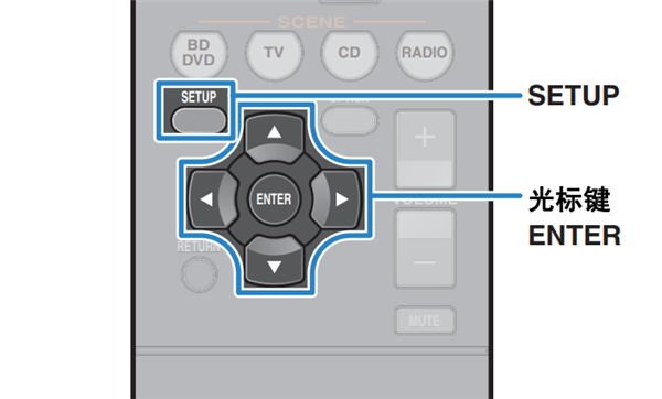 • 仅在通过 HDMI 将电视连接至本机时,才能在电视屏幕上执行操作。否则,通过查看前面板显示屏来执行操作。