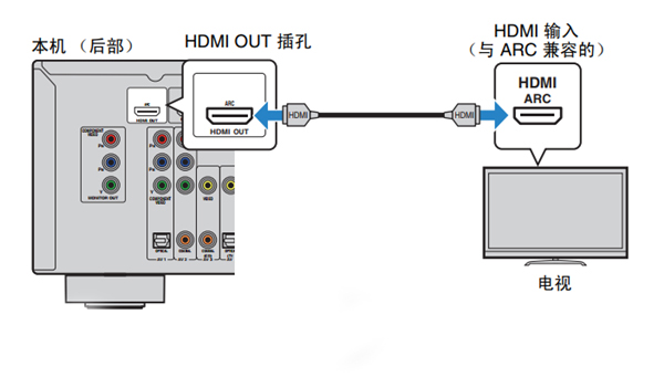 雅马哈HTR-3066家庭影院怎么连接电视用 HDMI 缆线将电视连接至本机。