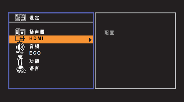 ④ 使用光标键选择 “HDMI”,然后按 ENTER。
