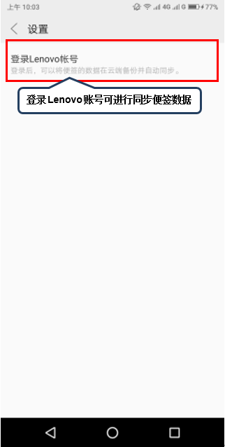 6、点击右上角【设置】图标,点击【登录Lenovo账号】登录联想账号后,可以将便签的数据同步到云端。