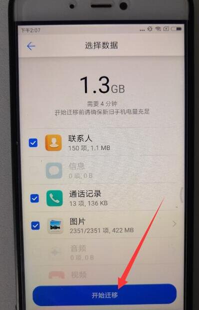 5、最后点击勾选【联系人】选项,点击️【开始迁移】即可导入。