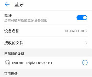 3.此时手机的蓝牙设备搜索列表上会出现1MORE E1001BT耳机的名字,如果没有,请尝试刷新蓝牙功能界面。在设备名称选项中选择“1MORE Triple Driver BT”,并按照手机上显示的说明步骤配对连接。