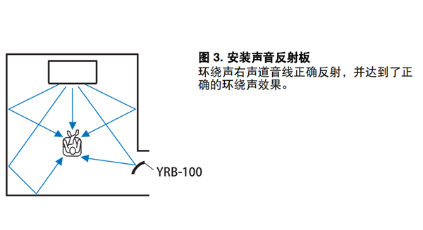 如果环绕声音线没有向听音位置 (图 2)反射,您可以通过安装选配的声音反射板 YRB-100 进行调节。