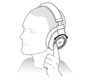2.向前 (+) 或向后 (–) 旋转音量旋轮 ,可以控制调节耳机的音量。