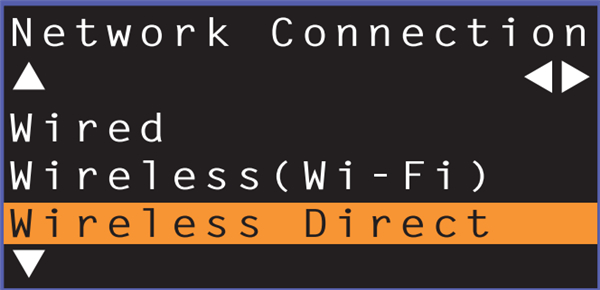 6、使用 上/下 键选择 “Wireless Direct”,然后按 ENTER 键。