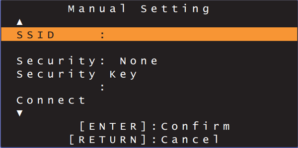 9、使用 左/右/上/下 和 ENTER 键输入接入点的 SSID。