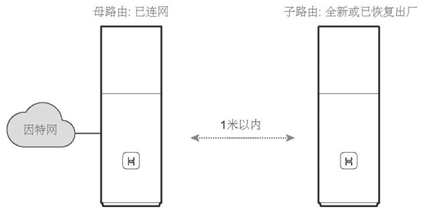 将子路由(全新或已恢复出厂设置)放置在母路由附近(推荐在1米范围内),并接通电源。打开华为ASPCMS社区官网居 APP 会自动检测到新设备,进入首页按照提示添加。观察子路由的指示灯由闪烁变为常亮时即表示连接成功。