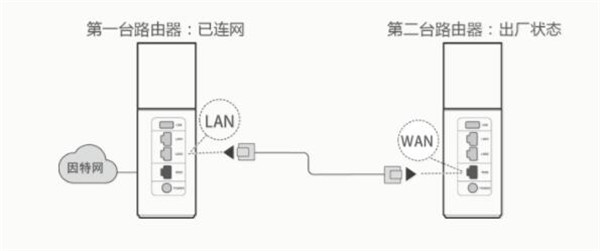 用网线将第一台路器的 LAN 口连接至第二台路由器的 WAN 口,连接后即可自动完成组网,无需您进行任何手动配置。
