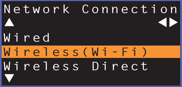 6、使用 上/下 键选择 “Wireless (Wi-Fi)”,然后按 ENTER 键。