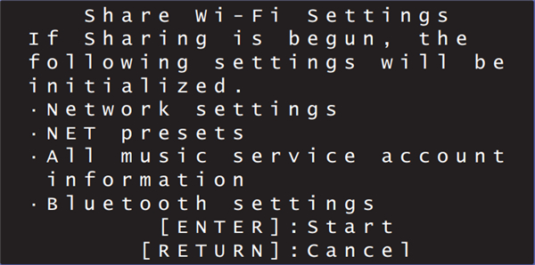 • 显示将被删除 (初始化)的设置。如果不希望删除这些设置,请按 RETURN 键中断连接。