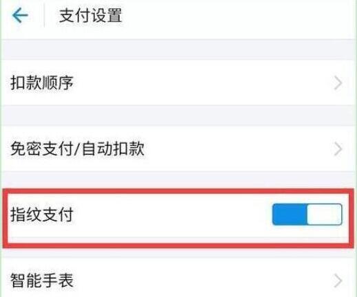 4、最后点击打开【指纹支付】的开关即可设置支付宝指纹支付。