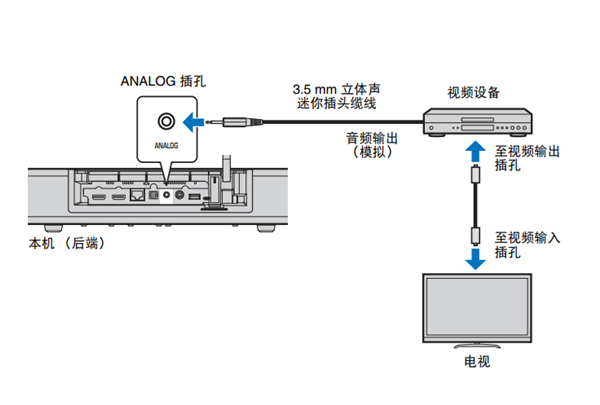使用遥控器上的 ANALOG 键将输入切换至 ANALOG,电视音频可以通过本机播放