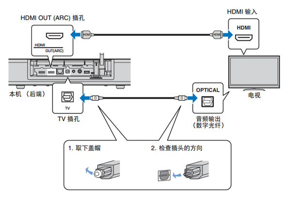 雅马哈SRT-1500蓝牙电视音箱怎么连接电视机将电视机与本机连接,保证输入到本机的视频可以输出到电视中。您还可以在本机上欣赏电视音频的播放。