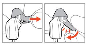 2.确保您看不到卡柱且耳塞已固定到位。