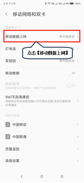 4、选择SIM卡,即上网时默认使用该SIM卡。