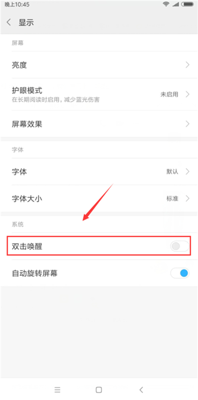 3、在显示界面,我们找到【双击唤醒】一栏,我们可以看到双击唤醒现在是关闭的。