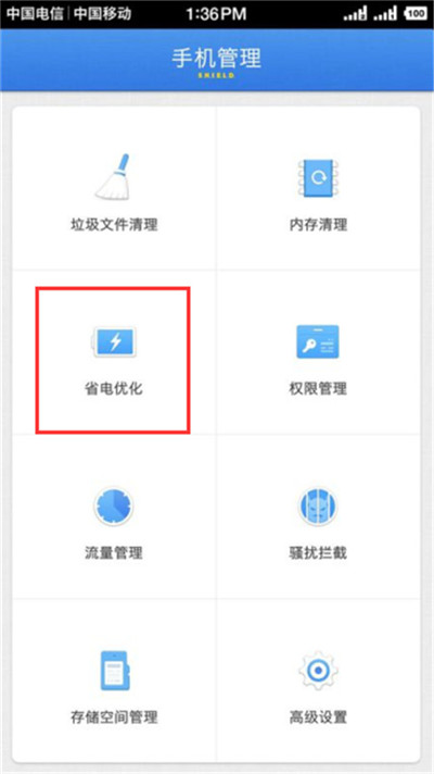 1、打开手机桌面,找到【手机管理】的蓝色雨伞标志,点击打开。