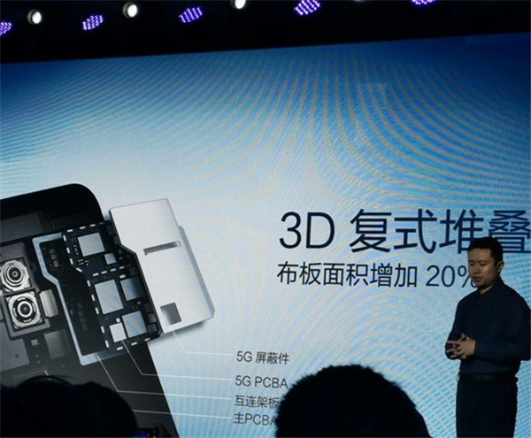 为了实现5g,机身内部采用了3D复式堆叠设计、MoB封装技术,有效减少内部元器件所占空间。