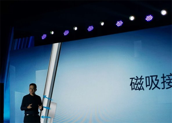 除了没有扬声器孔之外,vivoapex也是没有充电接口的,取而代之的是磁吸式充电接口。在平面的结构上,为了实现这个技术,vivo采用了自锁定磁吸接口,真正意义上实现了盲插。