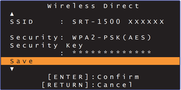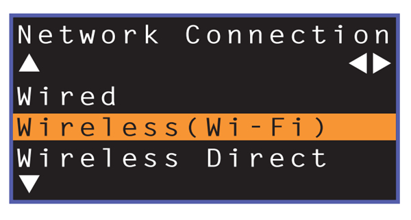 6、使用 上/下 键选择 “Wireless Direct”,然后按 ENTER 键。