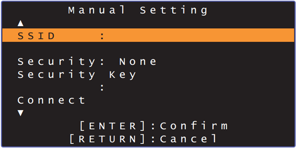 6、使用 上/下 键选择 “Wireless (Wi-Fi)”,然后按 ENTER 键。