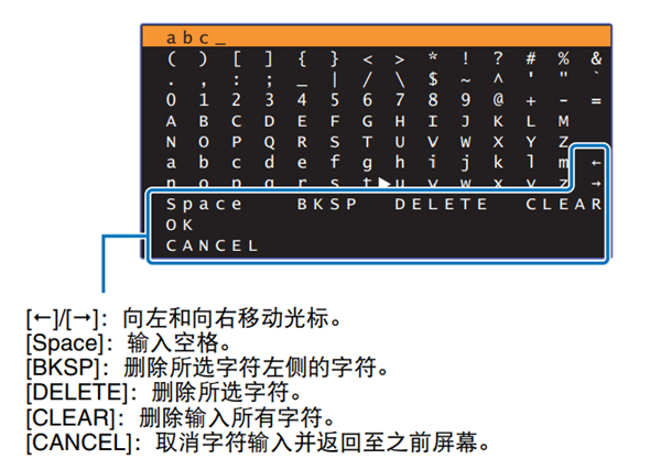 9、使用 左/右/上/下 和 ENTER 键输入接入点的 SSID。
