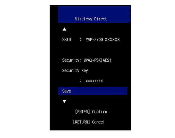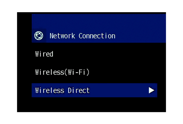6、使用 上/下 键选择“Wireless Direct”,然后按 ENTER 键。