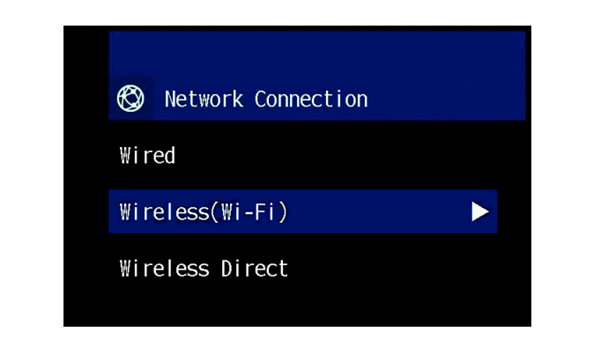 6、使用 上/下 键选择“Wireless (Wi-Fi)”,然后按 ENTER 键。