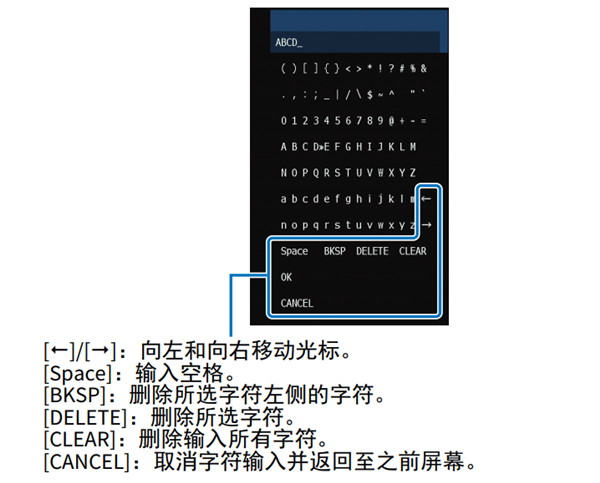 9、使用 上/下/左/右 和 ENTER 键输入接入点的 SSID。