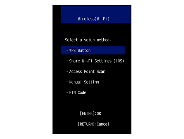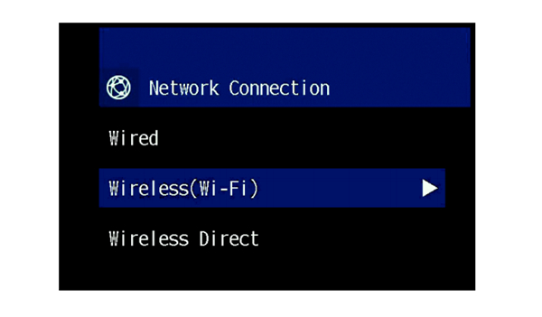 6、使用 上/下 键选择“Wireless (Wi-Fi)”,然后按 ENTER 键。