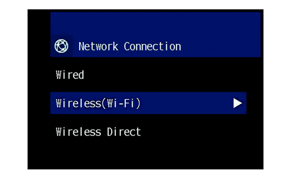 6、使用 上/下 键选择“Wireless (Wi-Fi)”,然后按 ENTER 键。