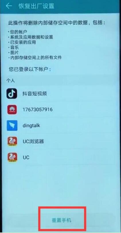 5、点击屏幕下方的【重置手机】即可恢复出厂设置。