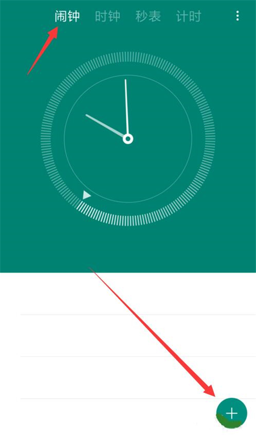 2、点击左上角的【闹钟】一栏,再点击闹钟页面的下方的【+】,添加一个新的闹钟