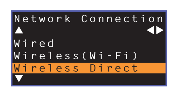 6、使用上/下键选择“Wireless Direct”,然后按ENTER键。