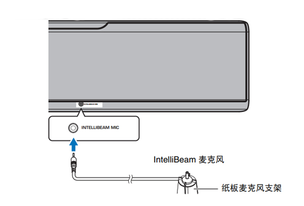 3、将 IntelliBeam 麦克风连接到本机的 INTELLIBEAM MIC插孔。