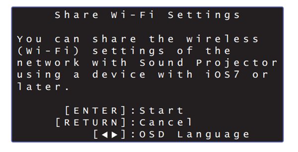 可以使用此功能,通过从设定菜单中选择“Share WiFi Settings”随时连接至无线网络。但是请注意,如果已经配置了不同的无线网络或蓝牙设备,如此操作可能会将之前的设置删除。