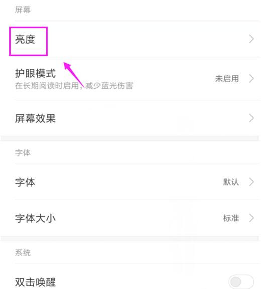 第三步:在显示界面,我们选择【亮度】一栏,如图所示。